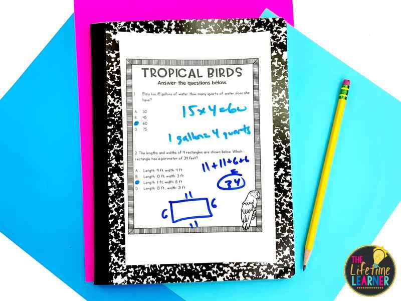 Perfect for state testing review, the Beach Classroom Transformation practices the following math standards for your fourth-graders: