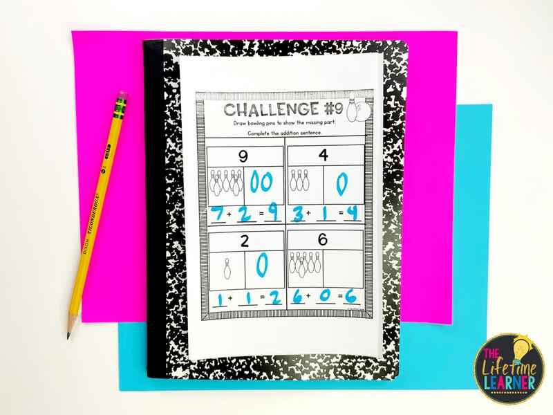 As a fun optional activity, you can bring real-life bowling to this classroom transformation. In past years, I’ve used a plastic bowling set in this transformation and allowed my students to bowl each time they completed one of the math challenges. They can keep track of their scores with the provided recording sheet. This extra step in the transformation always encourages students to finish the challenges.