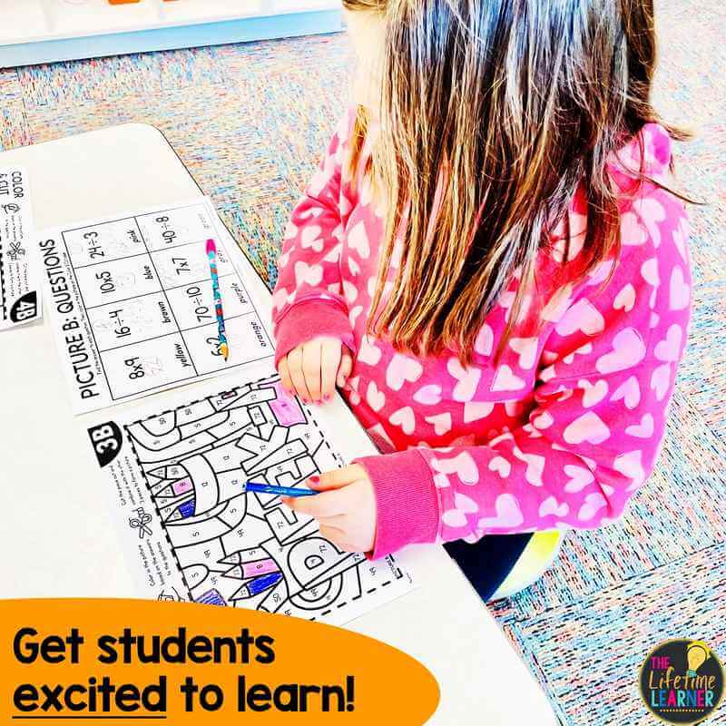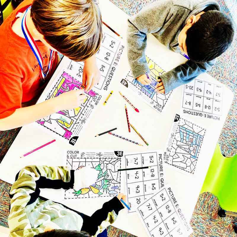 Groups that finish early can begin working on another picture if you’ve printed extra sets. Every themed coloring activity comes with 5 unique pictures for you to choose from. Since each picture includes different problems and a different image, students can complete multiple pictures without repeating work.
