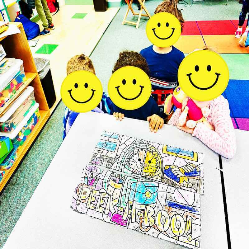 Each group creates a single image, but every student contributes a different piece. When all the pieces come together, the final result is a complete picture that feels more like a group accomplishment than an individual worksheet.