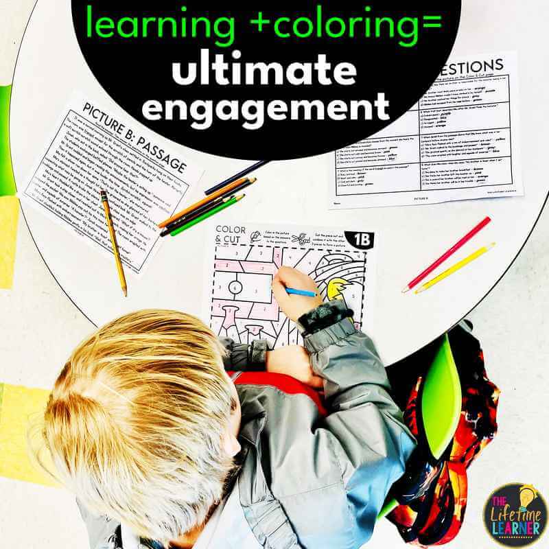 If a group has fewer than four students, or someone finishes early, extra Color & Cut pages can be colored in by any student easily. You don’t need groups of 4 to do this activity. Independent practice, partners, or more than 4 kids in a group is possible.