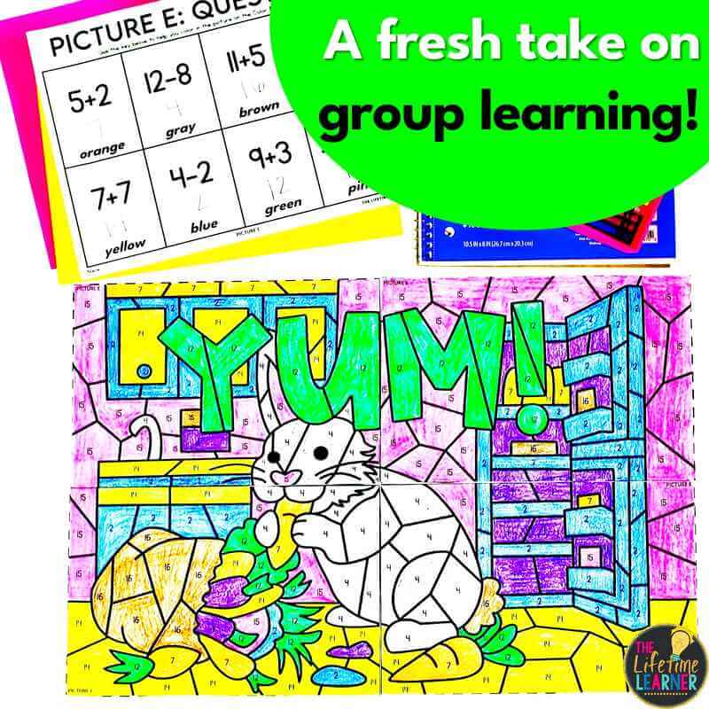 Before diving into all the ways to use collaborative coloring pages, it helps to actually see one in action! This free team coloring activity is an easy way to try it out with your students and see how easy it is to review skills and practice teamwork at the same time.