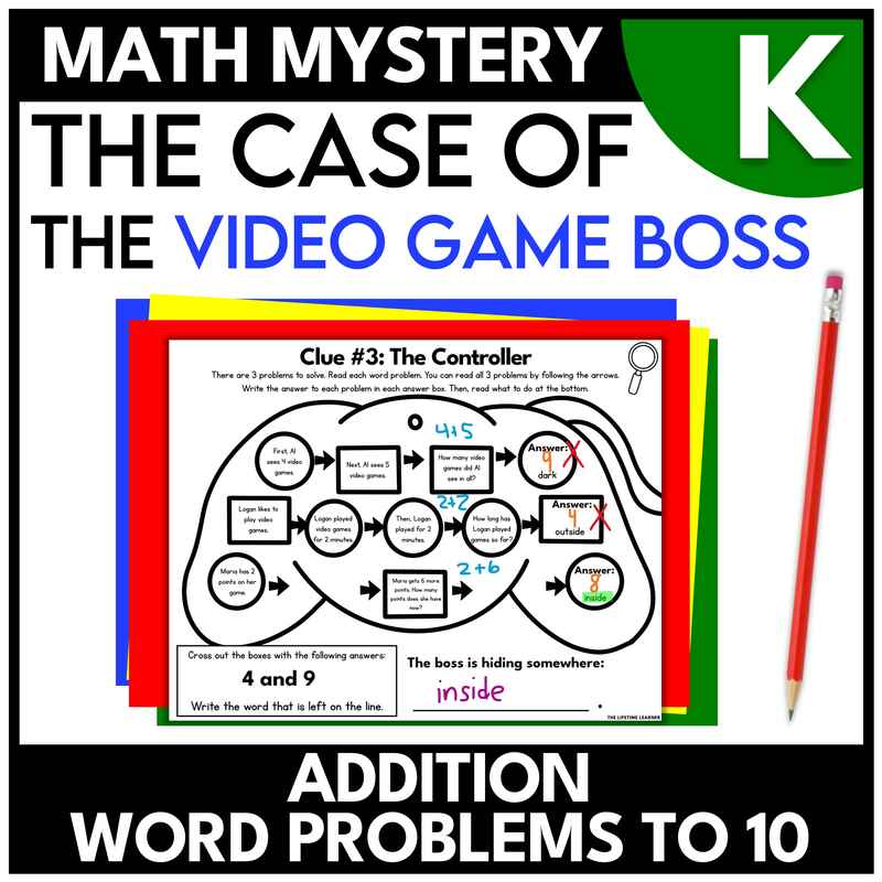 Click here for more information about the kindergarten video game math mystery on TPT.