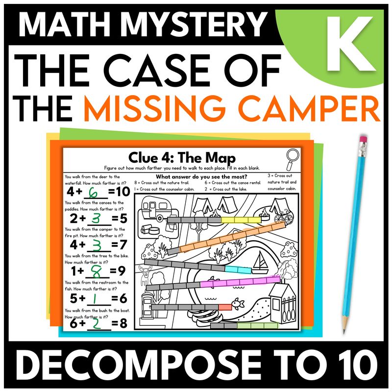Click here for more information about the kindergarten camping math mystery on TPT.