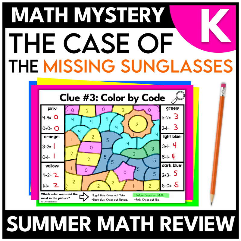 The Lifetime Learner’s math mysteries are designed to make kindergarten math review engaging without adding extra prep for teachers. Each mystery turns skill practice into a problem-solving experience where students solve clues, eliminate options, and work toward a final answer. The format stays consistent so students can focus on the math, while the themes and skills keep review fresh and motivating all year long.