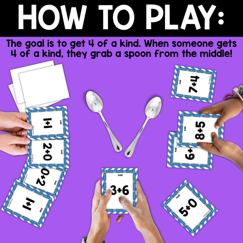If you have ever played the game “SPOONS” before, this is the same game, except with math concepts! I use this game every month during math centers in my classroom and it’s definitely become a student favorite.