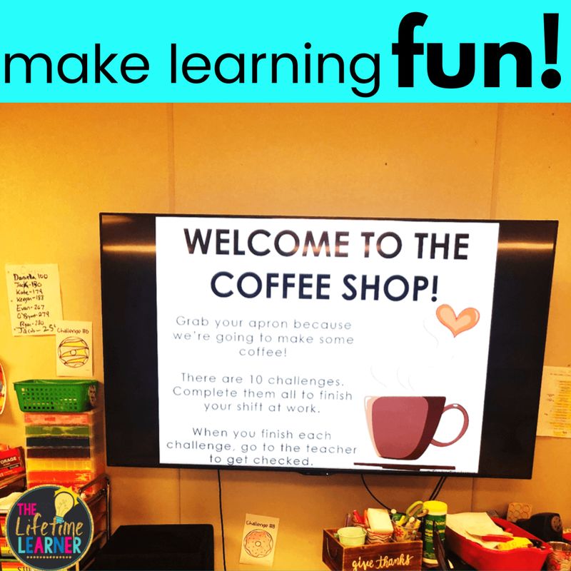 Step 1: Tell your 1st grade class that they are coffee shop owners today and will practice addition and subtraction strategies within twenty. Students solve math challenges set up around the room. They can be completed in any order and you can choose how many challenges students complete or what time frame they have to meet YOUR needs.