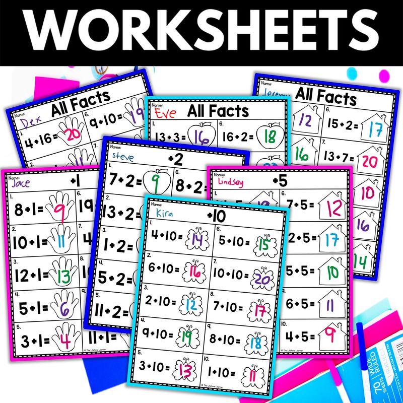 - There are 10 worksheets for each addition fact from +1 to +10.