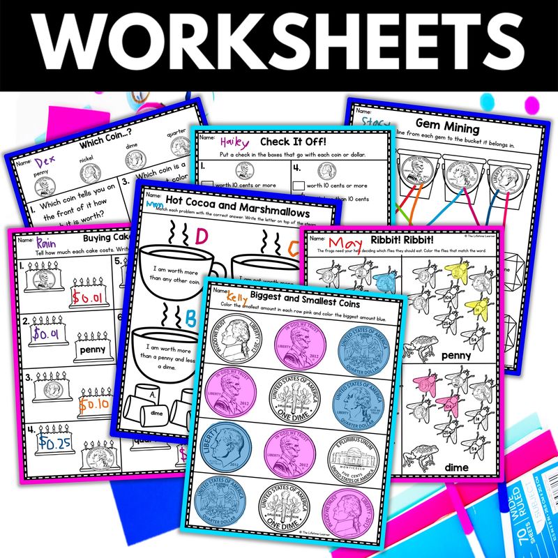 Teachers love how versatile this identifying coins worksheets unit is! Use it to: