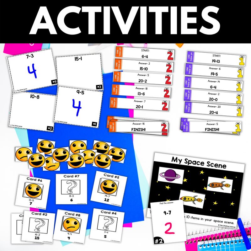 This subtraction to 20 resource includes a variety of engaging practice opportunities that reinforce fluency, accuracy, and understanding: