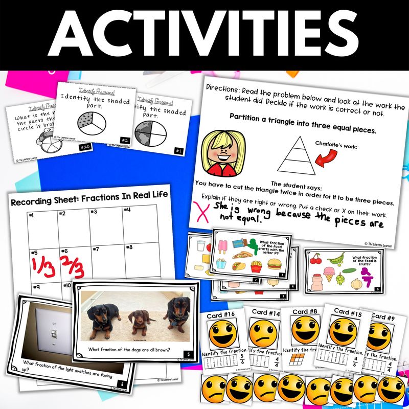The mix of direct instruction, visual modeling, and themed games ensures students stay engaged while mastering foundational fraction skills.