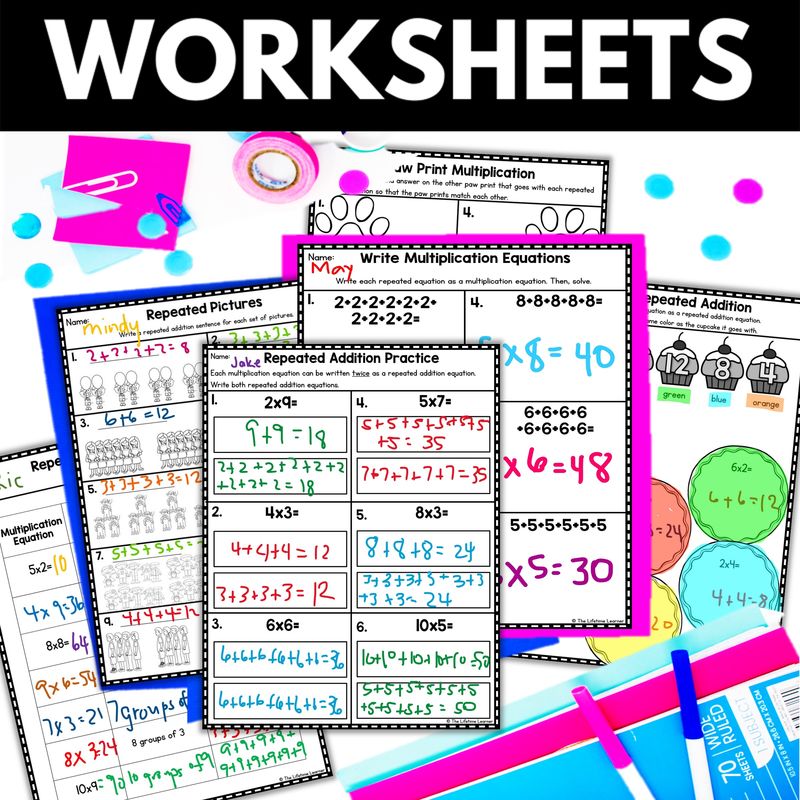 Help your students master multiplication with this multiplication repeated addition worksheets unit! Packed with interactive lessons, hands-on activities, and engaging games, this resource introduces multiplication as repeated addition — giving students the foundation they need to understand multiplication conceptually.