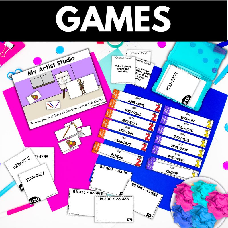 Help your students master multi-digit addition with this 4th grade addition worksheets unit for 4th grade! This complete resource includes over 200 pages of mini lessons, differentiated worksheets, and games that make adding whole numbers fun and engaging.