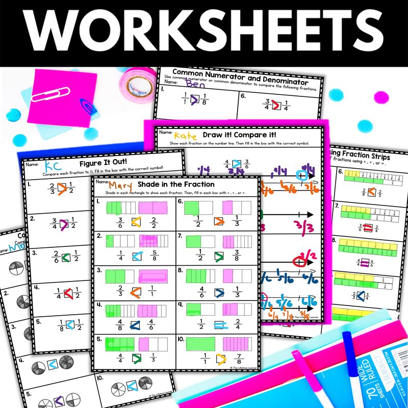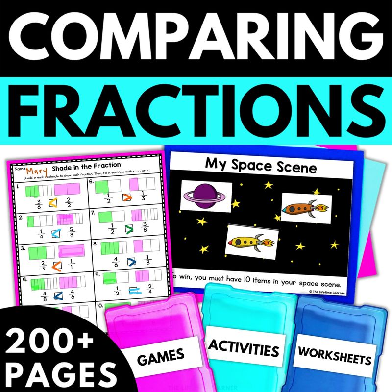 This 4th grade comparing fractions unit includes EVERYTHING you need to teach students how to compare fractions. Students compare fractions in a mini-lesson, complete comparing fraction worksheets, and play comparing fraction games and activities.