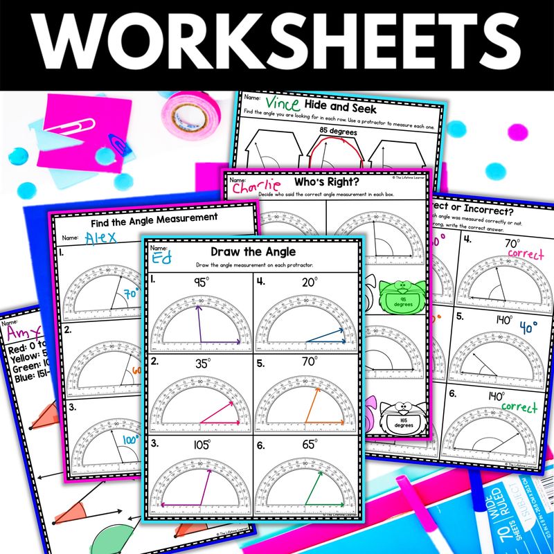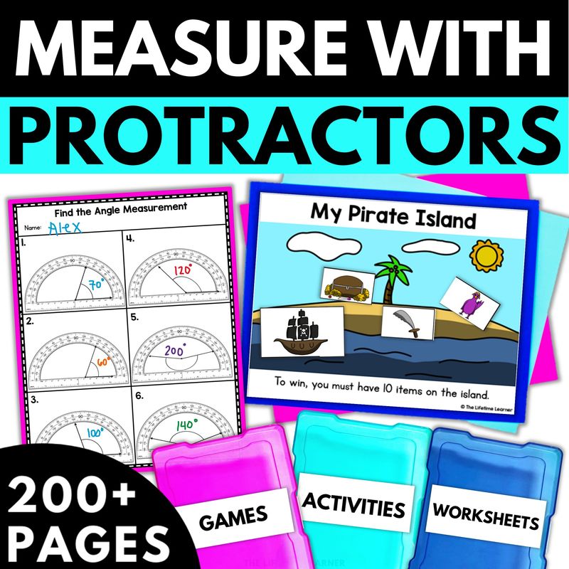 Help your students build confidence with angles using this measure with protractors worksheets unit! This 4th grade resource includes everything you need to teach students how to measure, draw, and identify angles with a protractor. With over 200 pages of mini-lessons, worksheets, and engaging games, this unit gives students all the protractor practice they need to master angle measurement.