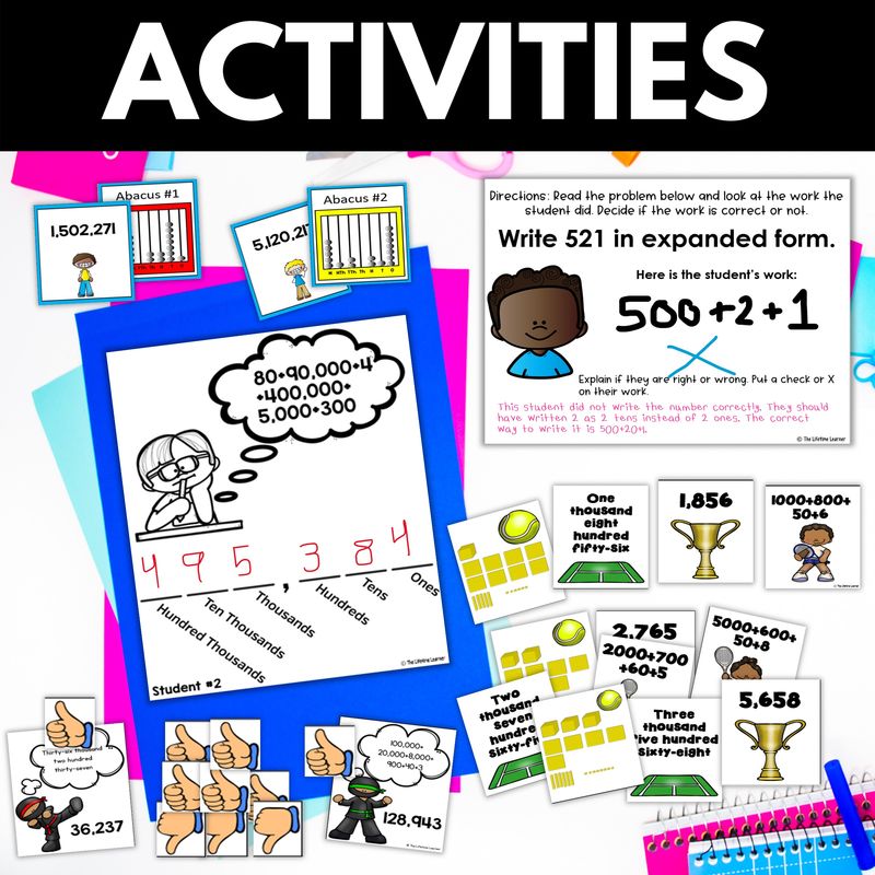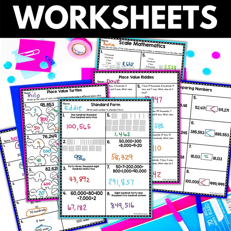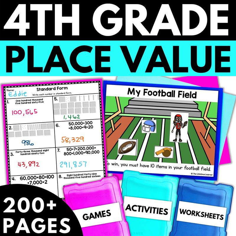 Bring place value to life with this 4th grade place value worksheets unit packed with interactive lessons, games, and hands-on activities for 4th grade! This math resource includes over 250 pages of practice materials that teach students to read, write, and compare numbers up to one million.