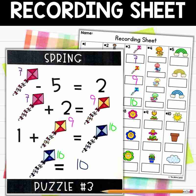 The puzzles target addition and subtraction facts within 10, encouraging students to think critically while solving. Skills reinforced include: