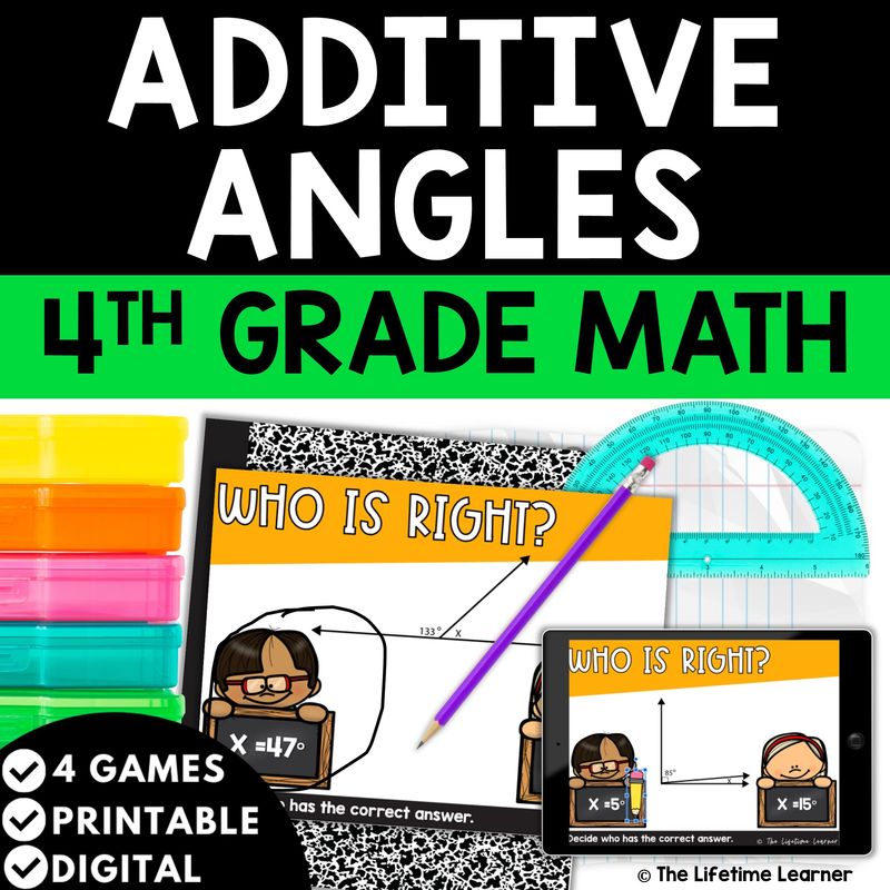 These additive angles 4th grade math task cards are an engaging alternative to standard worksheets. Instead of completing a page of problems, students play through games that promote reasoning, collaboration, and confidence.