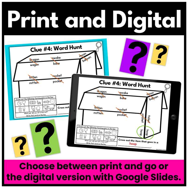 Looking for differentiation? Each resource includes a bonus mystery focused on CVC words. While most of the class works on the main phonics skill, students who need extra practice with CVC words can complete this version instead. The bonus mystery is designed to look and feel exactly like the main one, with the same style of clues and the same final solution. This way, every student is engaged in the same mystery storyline, but the skill level can be adjusted to meet their needs seamlessly.
