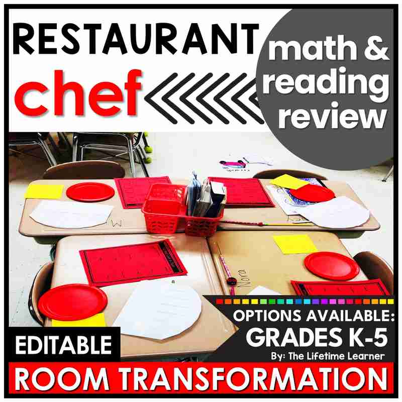 Transform your classroom into a fun themed learning activity with this chef math and reading classroom transformation! Engage your students with 20 chef activities (10 math and 10 reading). Choose any grade K-5 and receive both subjects! Filled with math and reading worksheets, this themed learning day includes chef door decor, name tags, and posters. It’s also perfect as a chef math or reading escape room alternative! Print and digital versions are included.
