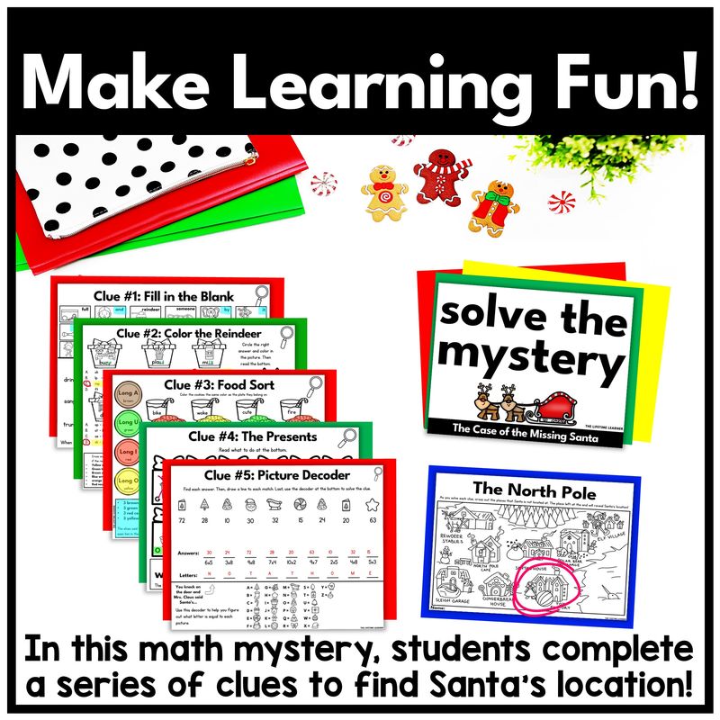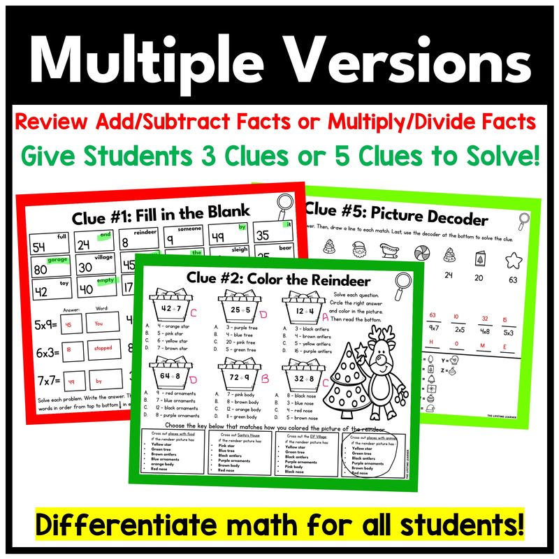 Christmas math fact mystery activities are the perfect way to build math fact fluency while keeping students excited and engaged as they practice addition and subtraction facts OR multiplication and division facts. This activity turns routine fact practice into a storyline that feels like a math escape room—without the stress of hours of teacher prep. Teachers simply print and go (or assign digitally), and students solve math clues to crack the case.