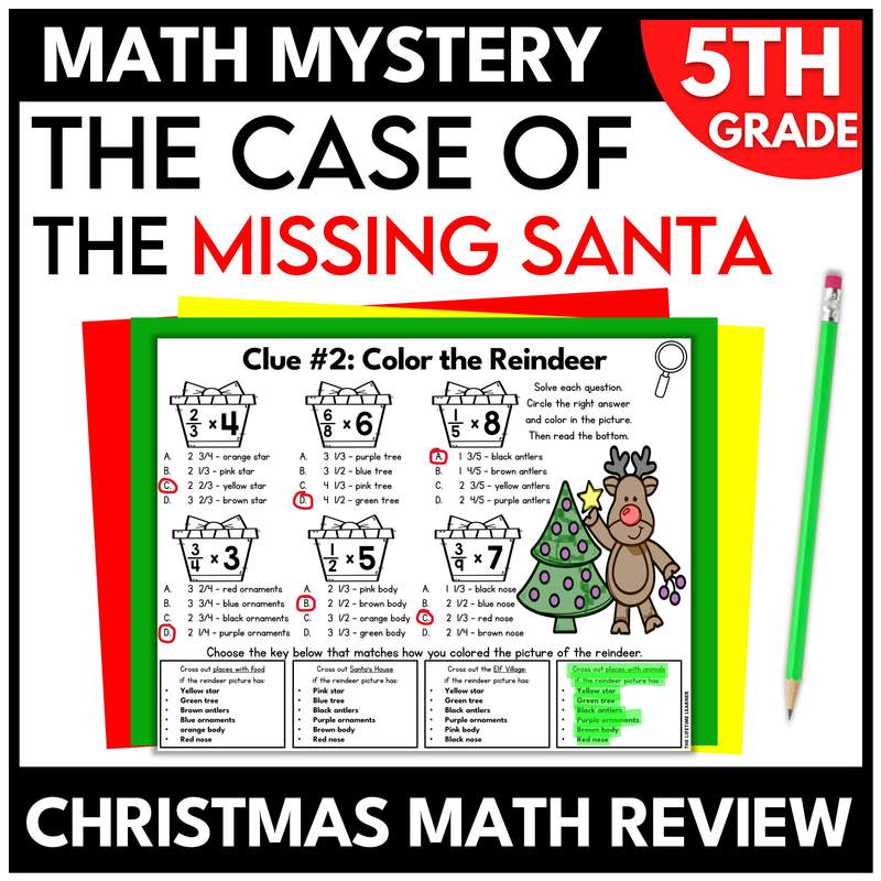 Teachers want math review activities that keep students engaged while building mastery. This 5th grade Christmas math mystery transforms routine worksheets into an interactive game where every problem brings students closer to solving the case.