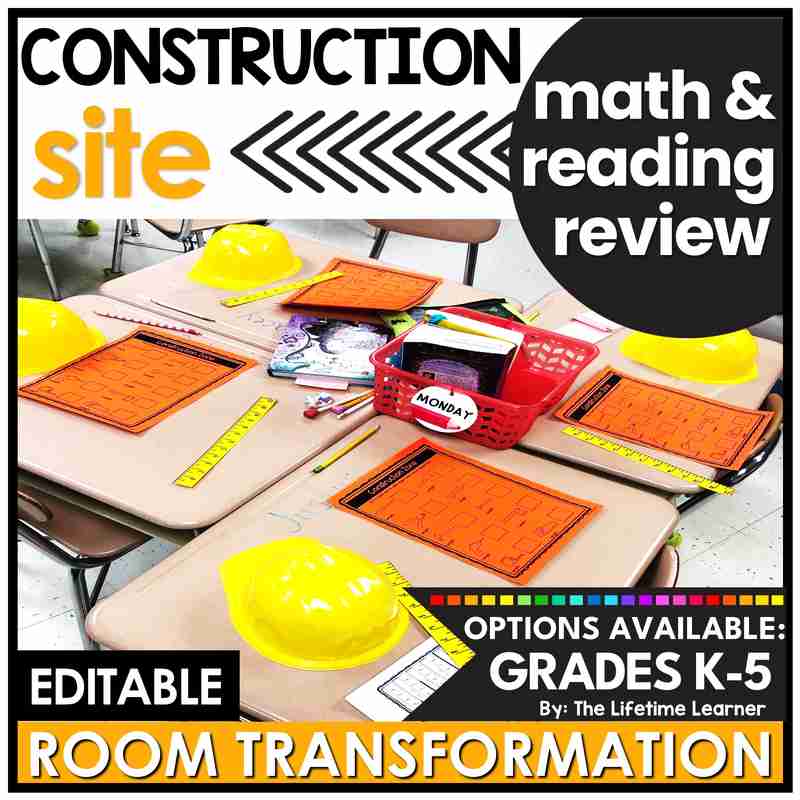 Transform your classroom into a fun themed learning activity with this construction math and reading classroom transformation! Engage your students with 20 construction activities (10 math and 10 reading). Choose any grade K-5 and receive both subjects! Filled with math and reading worksheets, this themed learning day includes construction door decor, name tags, and posters. It’s also perfect as a construction math or reading escape room alternative! Print and digital versions are included.