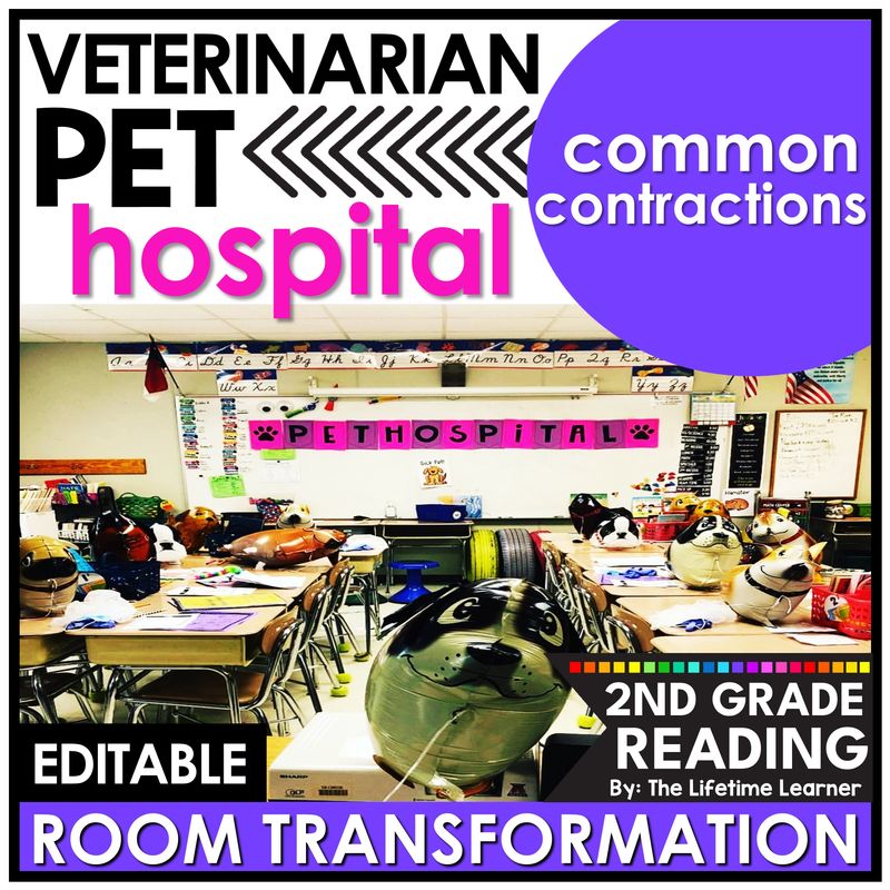 It’s veterinarian pet hospital day in this engaging 2nd grade room transformation or vet reading escape room! Second grade vets review contractions in a FUN way with tons of pet themed activities! This animal classroom transformation has contraction worksheets, contraction activities, and 2nd grade decodable readers that include contractions. It’s the perfect phonics activity to use on a pets day. Print, digital, and editable versions are included.