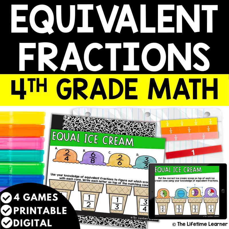 Students will love practicing equivalent fractions across four interactive games. Each game includes 11 problems, for a total of 44 questions to keep learning active and engaging: