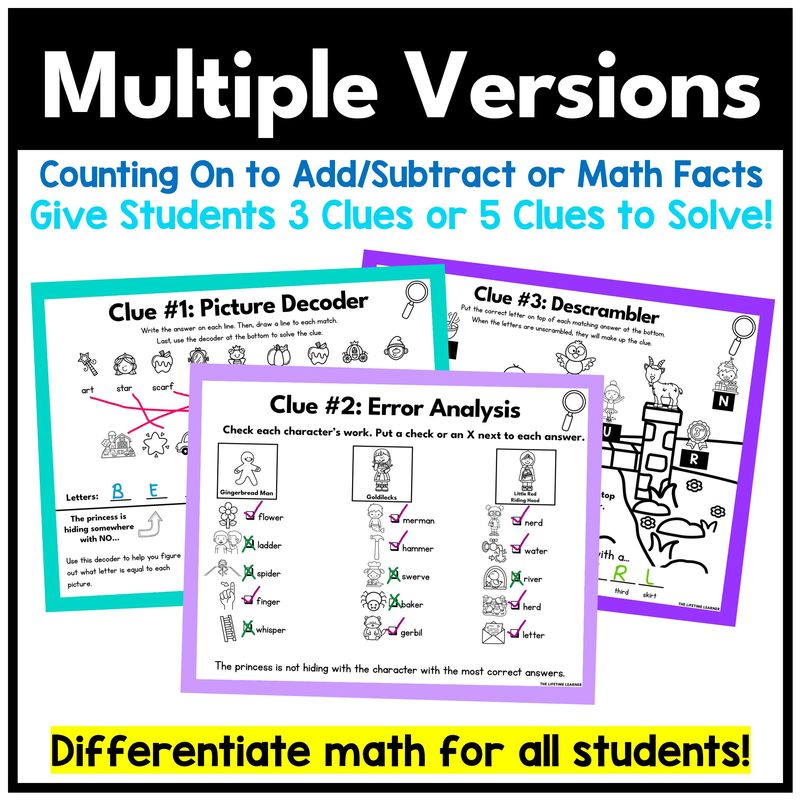 This fairy tale math mystery 1st grade activity is a fun way to practice math skills. With multiple versions, three mysteries included, and both print and digital formats, it’s flexible enough to fit any classroom. Students will love solving the clues to discover the answer, and teachers will appreciate how quick and easy it is to use.