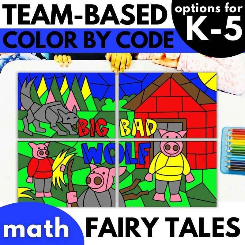 If you want to target fluency, you can use fairy tales addition facts coloring, fairy tales subtraction facts coloring, fairy tales add and subtract math coloring, fairy tales multiplication facts coloring, or fairy tales division facts coloring. These fairy tales math coloring activities allow students to review operations while staying engaged through teamwork.