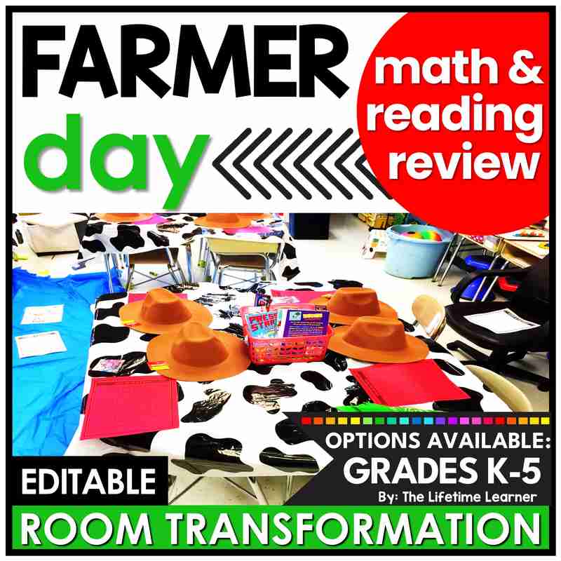Transform your classroom into a fun themed learning activity with this farmer math and reading classroom transformation! Engage your students with 20 farmer activities (10 math and 10 reading). Choose any grade K-5 and receive both subjects! Filled with math and reading worksheets, this themed learning day includes farmer door decor, name tags, and posters. It’s also perfect as a farmer math or reading escape room alternative! Print and digital versions are included.
