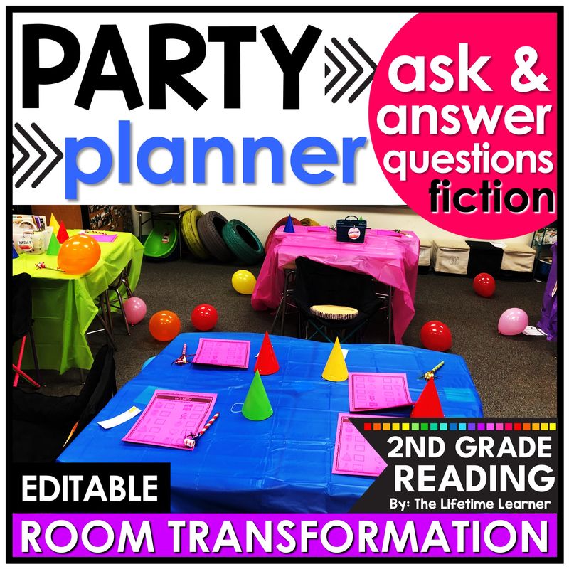 Let’s head to the party in this engaging 2nd grade room transformation or reading escape room! Students review fiction text evidence (ask and answer questions) in a FUN way with tons of party activities! This party planner classroom transformation has 10 reading comprehension passages with questions and activities students will ENJOY completing! It’s the perfect activity to use on a birthday or end of year party day. Print, digital, and editable versions are included.