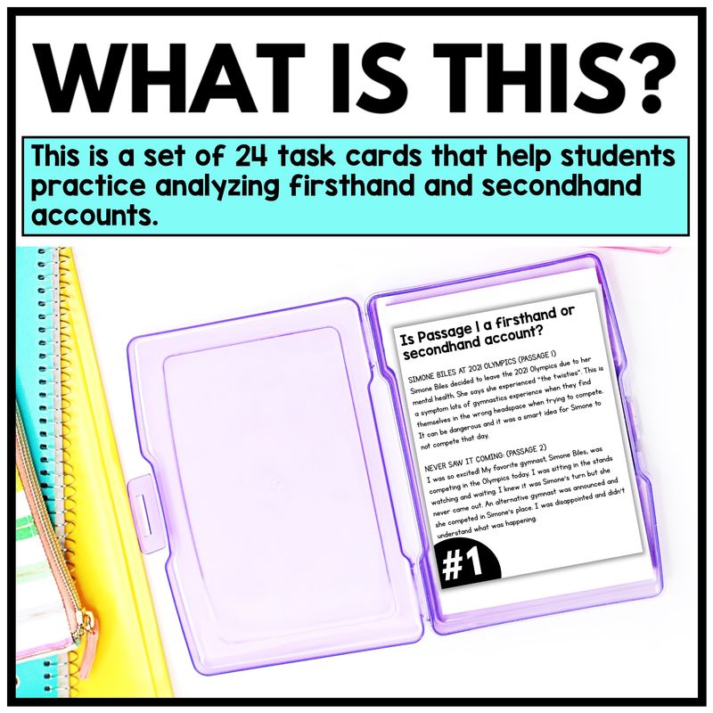 If you’ve been searching for a resource that helps students clearly identify firsthand and secondhand accounts, this set of task cards is exactly what you need.