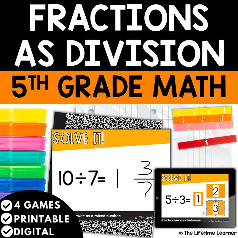 Looking for a fun and simple way to help your fifth graders master fractions as division problems? These Fractions as Division Problems 5th Grade Math Task Cards are perfect for keeping students engaged while practicing a new math concept. The best part? Each set of task cards also doubles as a math game, giving students four exciting ways to review while building understanding of this math skill.