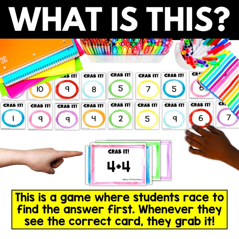 Fact fluency is the foundation of strong math skills, but traditional flashcards and drills can feel boring. Grab It changes the game. By combining hands-on learning, competition, and repetition, students stay engaged while practicing the exact facts they need. With 35 skill sets, editable cards, and multiple gameplay variations, this bundle is flexible, reusable, and perfect for year-round practice. It’s a resource you’ll use again and again for math centers, intervention, partner practice, and spiral review.