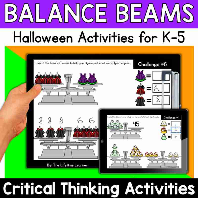 These Halloween Balance Beams & Logic Puzzles bring together math fact practice, reasoning, and seasonal fun. With three skill-levels and multiple formats, this activity helps you make October meaningful, challenging, and exciting for your students.