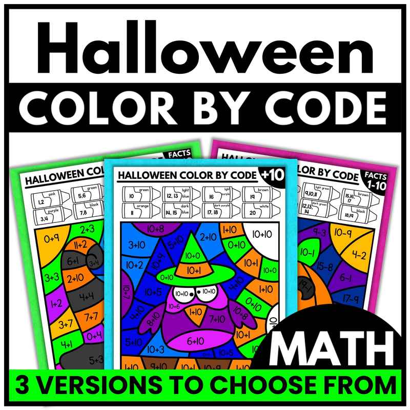 This Halloween color by code math resource is available in three versions, each with 28 pages of print-and-go practice:
