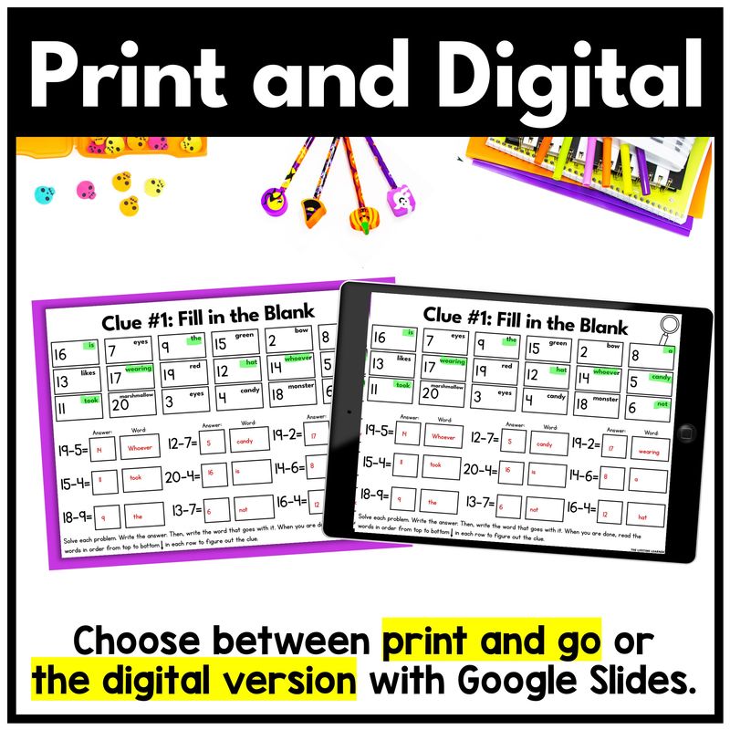 This Halloween math fact mystery is a fun way to practice addition, subtraction, multiplication, and division facts across grades K–5. With multiple versions, two mysteries included, and both print and digital formats, it’s flexible enough to fit any classroom. Students will love solving the clues to reveal the final answer, and teachers will love how quick and easy it is to use.