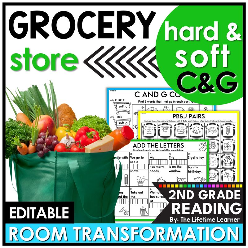 Let’s go grocery shopping in this engaging 2nd grade room transformation or reading escape room! Second grade students review hard and soft C and G words in a FUN way with tons of grocery store activities! This food themed classroom transformation has soft and hard C & G worksheets, phonics activities, and 2nd grade decodable readers. It’s the perfect phonics activity to use on a supermarket theme day. Print, digital, and editable versions are included.