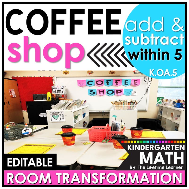 It’s coffee shop day in this engaging kindergarten room transformation or math escape room! Kindergarten students review addition and subtraction to 5 in a FUN way with tons of coffee themed activities! This EDITABLE classroom transformation has lots of add and subtract activities (K.OA.5) including adding to 5 and subtracting to 5. It’s the perfect math activity to use on any cafe theme day. Print and digital versions are included.