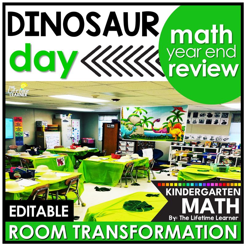 It’s dinosaur day in this engaging kindergarten dinosaur room transformation or math escape room! Students complete a kindergarten end of year math review game in a FUN way with tons of dinosaur math activities! This EDITABLE dinosaur theme classroom transformation has lots of math review activities, games, and worksheets. It’s the perfect math resource to use and comes with dinosaur write the room. Print and digital versions are included.
