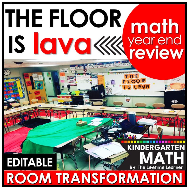 The floor is lava classroom transformation is here! Your students will love this engaging kindergarten math escape room where they cannot touch the floor! Students enjoy a lava-filled kindergarten math review in this EDITABLE end of year room transformation! Included are lots of end of year math activities and worksheets that are perfect as a kindergarten math review packet in this math test prep room transformation. Skills include: addition and subtraction, counting, measurement, geometry, identifying numbers, and more! Print and digital versions are provided.