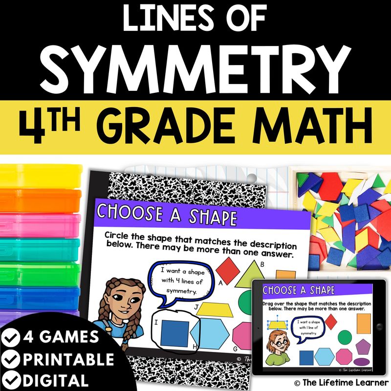 These lines of symmetry 4th grade math task cards are an engaging alternative to standard worksheets. Instead of completing a page of problems, students play through games that promote reasoning, collaboration, and confidence.