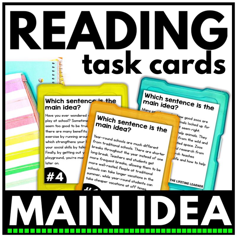 ✅ Ready to give your students confidence with main ideas? Print these task cards today and start building comprehension in a fun, approachable way.