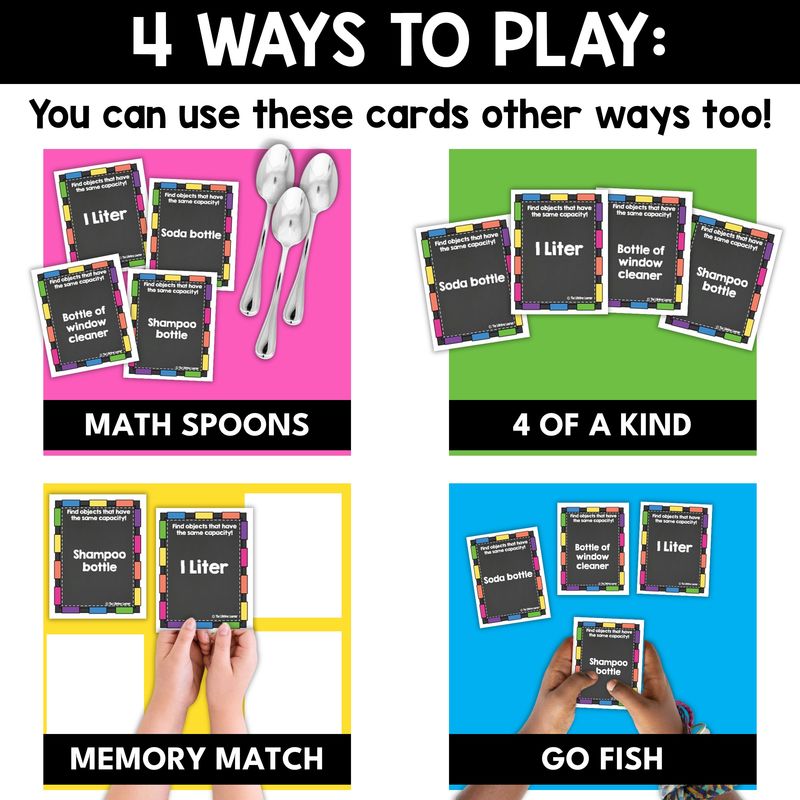 Each game works just like the traditional card game of Spoons, but instead of matching face cards, students match math cards. By collecting four of a kind, they get repeated exposure to key math concepts in a way that feels like play instead of drill.