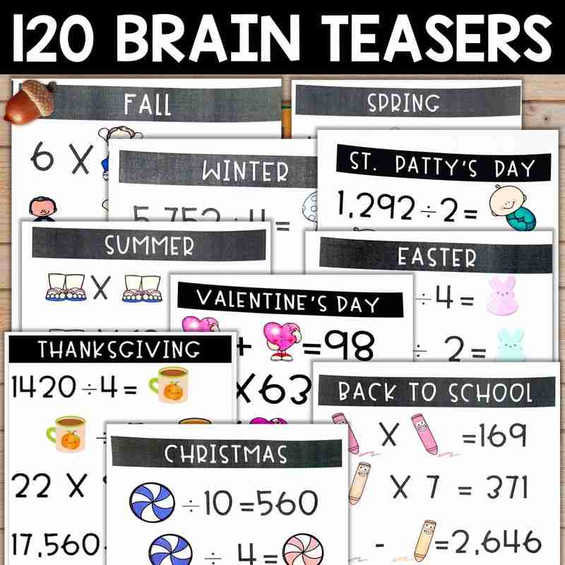 Give your 4th and 5th grade students a full year of meaningful math enrichment with the Multi-Digit Multiplication and Division Brain Teasers Bundle. Inside, you’ll find 120 holiday-themed logic puzzles that stretch problem-solving skills, strengthen fluency with multi-digit operations, and keep students motivated from August through June. Each set is print-and-go or ready to project digitally, with answer keys and recording sheets included—so you can add them to your routine with no prep.