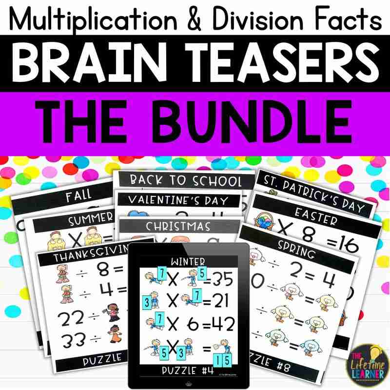 Multiplication and Division Brain Teasers – Yearlong Holiday Bundle