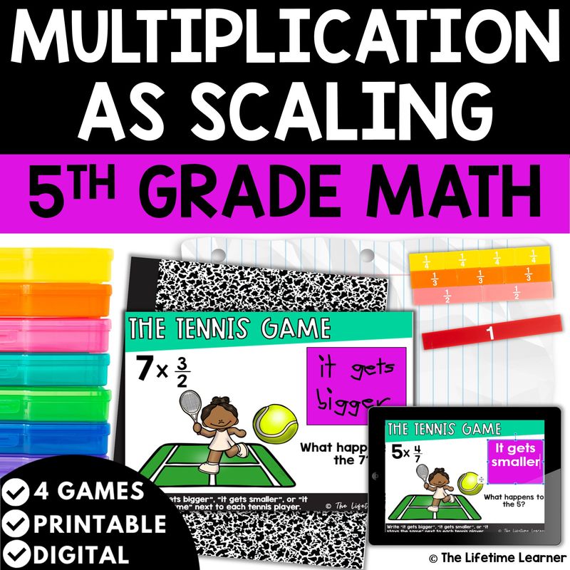 These multiplication as scaling 5th math task cards are an engaging alternative to standard worksheets. Instead of completing a page of problems, students play through games that promote reasoning, collaboration, and confidence.
