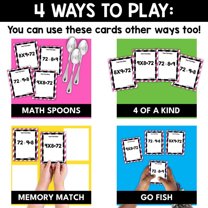 When you download the Multiplication and Division Fact Families Math Spoons Game, you’ll receive: